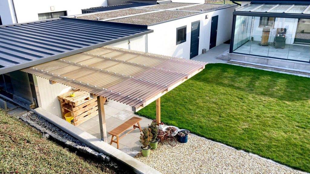 Das 653 m² große Grundstück bietet ausreichend Platz zum Entspannen und Gestalten. Zusätzlich stehen eine Garage für drei Autos, weitere Autoabstellplätze sowie ein Nebengebäude mit Freizeitraum zur Verfügung.