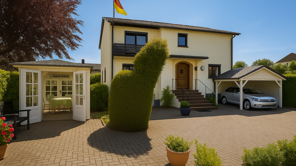 Ausstattung & Highlights: Große Küche mit angrenzendem Essbereich Zwei Tageslichtbäder mit Dusche und Badewanne Zwei Balkone Garage & Carport Gartenhütte & großzügiger Pavillon mit gemauerter Grillecke Riesiger Garten mit viel Privatsphäre und Grünfläche Option zur Bebauung oder Grundstücksteilung (vorbehaltlich Genehmigung)