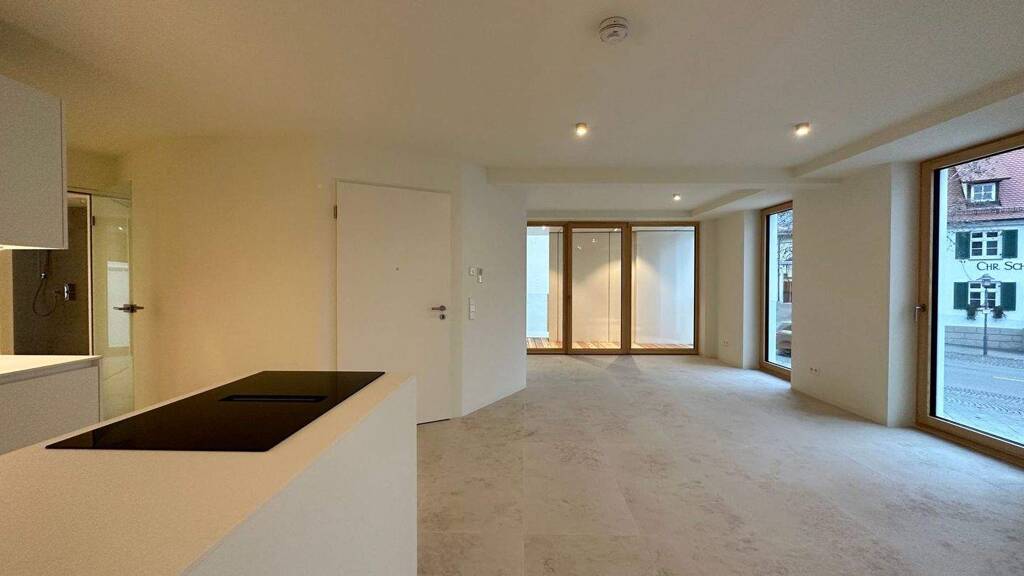 Diese stilvolle 2-Zimmer-Wohnung im Erdgeschoss/Hochparterre bietet modernen Wohnkomfort und liegt in bester Lage, direkt am Marktplatz von Langenau. Das Gebäude wurde 2024 neu errichtet und fügt sich mit seiner eleganten weißen Fassade harmonisch in die historische Altstadtarchitektur ein. Innen kombiniert die Wohnung moderne Ausstattung mit durchdachten Details und schafft ein außergewöhnliches Wohngefühl.
