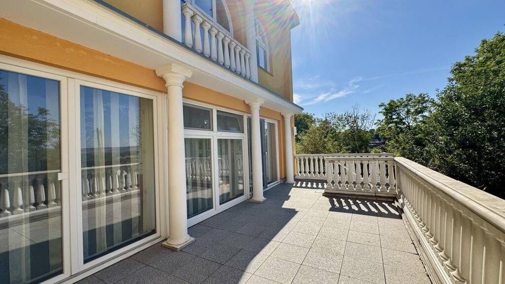 Die einzigartige Architektenvilla in Bucha, bietet Ihnen besonderes Wohnen auf großzügigem Wohnraum von ca. 270 Quadratmetern, zuzüglich ca. 95 Quadratmeter verschiedener Nutzflächen, wie einen Technikraum, Lagerräume und eine Garage. Das ca. 2.000 Quadratmeter große Grundstück ist rundum bepflanzt und bewachsen, sodass es Sichtschutz nach allen Seiten bietet und Sie sich ungestört im und am Pool entspannen oder die Sonne genießen können. Zusätzlich gehört ein angrenzendes Grundstück mit noch einmal ca. 2.300 Quadratmetern zum Verkaufsumfang. Das Wochenendhaus wurde im Jahr 2005 grundhaft saniert und neu aufgebaut. Es gibt auf dem Grundstück eine Hauswasseranlage, die über einen eigenen Brunnen die komplette Wasserversorgung abdeckt. Ebenso verfügt das Haus über eine Fußbodenheizung in den Wohnräumen (außer Schlafzimmer) und Bädern, sowie einen Kaminofen im offenen Souterrainbereich, mit dem man bis zur Galerie alle Etagen beheizen kann. Genießen Sie die wundervolle Aussicht über die Ortschaft und weit darüber hinaus. Große Rundbogenfenster sorgen für lichtdurchflutete Räumlichkeiten. In Verbindung mit den weißen Säulen am Haus, entsteht ein sehr angenehmes Zusammenspiel mit leicht toskanischer Anmutung. Bisher wurde das Haus als Wochenendgrundstück und Gästehaus für private Veranstaltungen genutzt. Für diesen Zweck eignet es sich optimal, da sich im Souterrainbereich eine lange Gästetafel und Platz für ein Buffet, eine zweite Küche, sowie kühle Lagerräume und eine Zufahrt über die Garage, befinden.