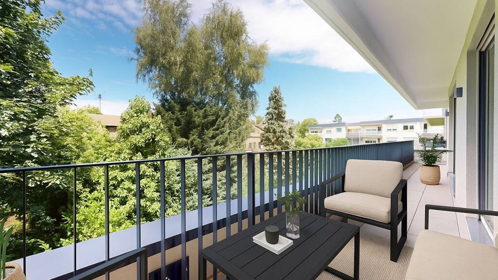 Vom Wohnbereich und einem der Schlafzimmer gelangen Sie jeweils auf einen der beiden Balkone, die sowohl morgens als auch am Abend viel Licht und frische Luft bieten. Die Wohnanlage ist gepflegt, z.