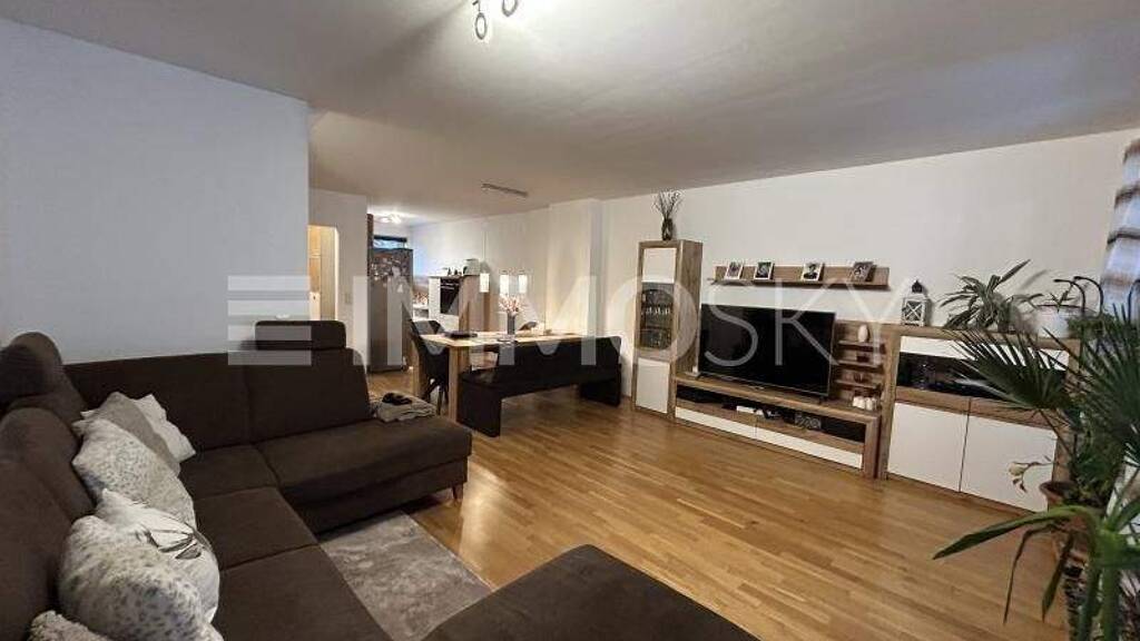 Die moderne, helle Aufteilung schafft ein offenes und freundliches Ambiente. Der Wohnbereich bildet das Herzstück der Immobilie und öffnet sich zum eigenen kleinen Garten, der zum Entspannen und Verweilen einlädt. Ergänzt wird der Außenbereich durch einen Balkon, der direkt von den Schlafräumen aus zugänglich ist und einen privaten Rückzugsort im Obergeschoss bietet.