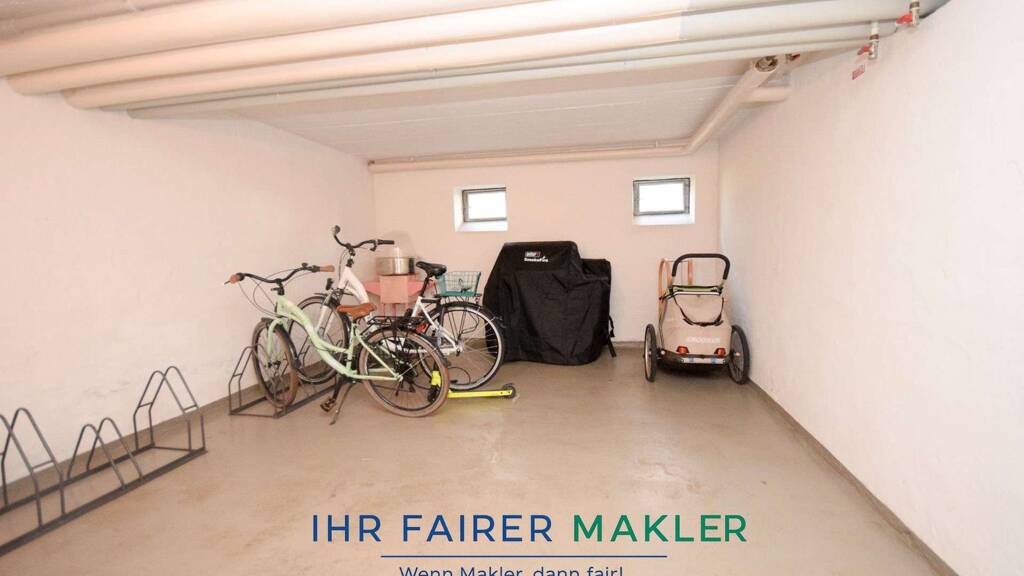 Ein Kellerraum bietet zusätzlichen Stauraum für Fahrräder, Sportgeräte oder andere Gegenstände. Ein gemeinschaftlicher Waschraum sowie ein Fahrradraum stehen ebenfalls zur Verfügung.