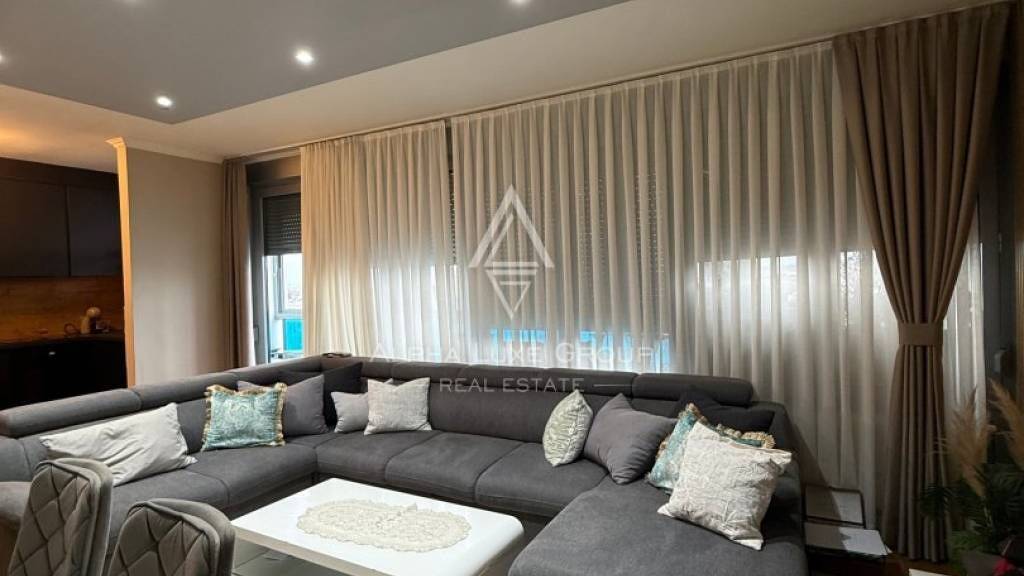Die Wohnung liegt im obersten Stockwerk, was ein hohes Maß an Privatsphäre, Ruhe und einen freien Ausblick ohne darüberliegende Nachbarn garantiert. Der Grundriss ist durchdacht und optimal genutzt. Sie umfasst ein großzügiges Wohnzimmer, das offen mit der Küche und dem Essbereich verbunden ist und Zugang zum Balkon bietet, zwei komfortable Schlafzimmer, ein Badezimmer, ein separates WC sowie einen Eingangsbereich.