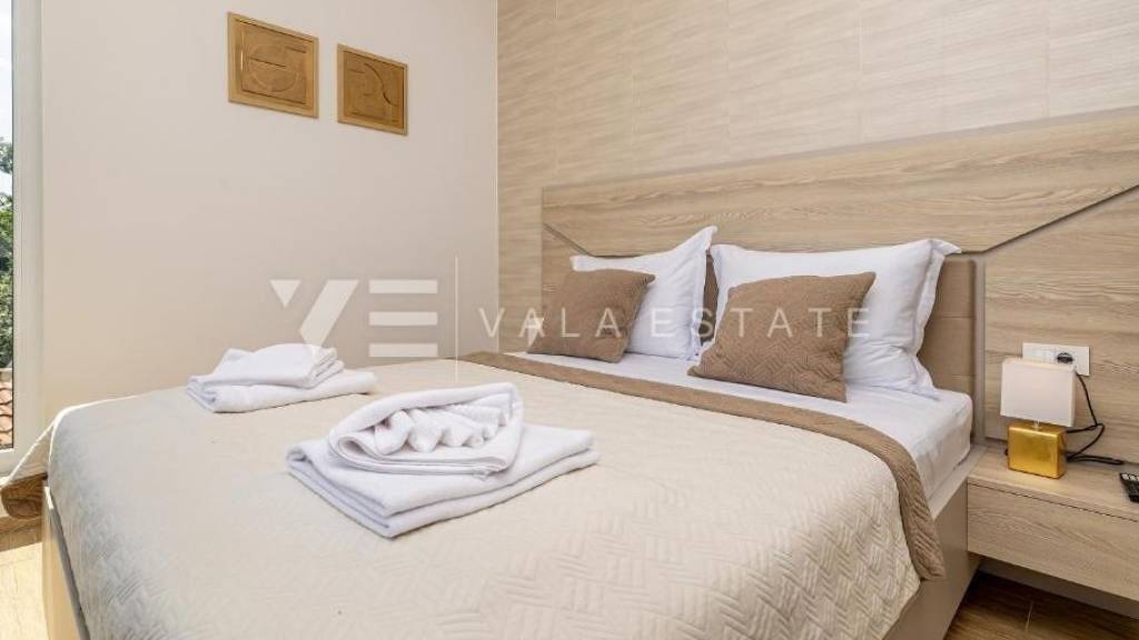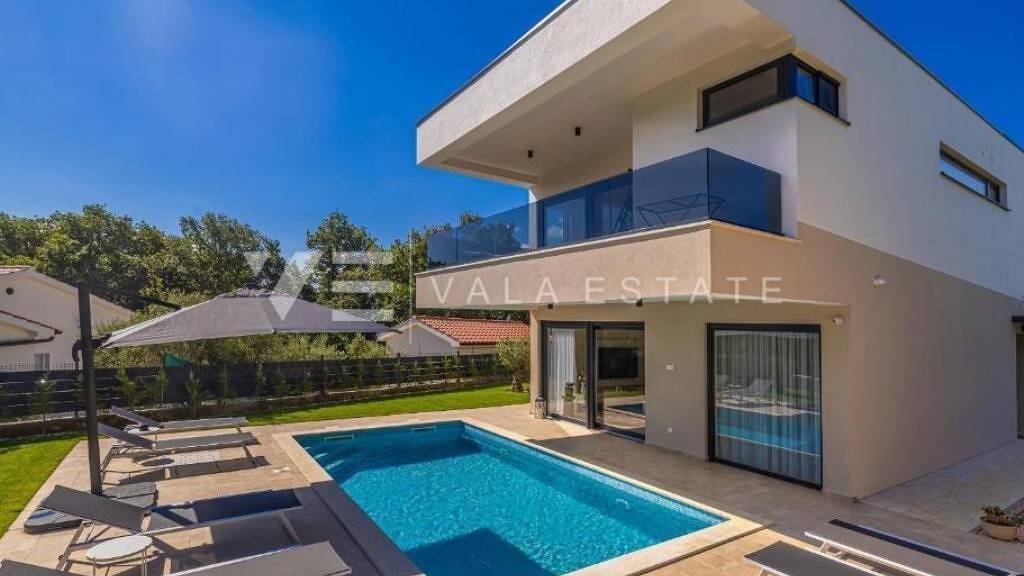 Immobilienangebot auf der Insel Krk, Omisalj Zum Verkauf steht ein modernes Doppelhaus mit 190 m Wohnfläche in einem Neubau in schöner, ruhiger Lage nahe dem Meer und dem Ortszentrum. Das Haus verfügt über ein Erdgeschoss mit einem geräumigen Wohnzimmer, einer Wohnküche, einem Gäste-WC und einem großen Abstellraum sowie ein Obergeschoss mit vier Schlafzimmern, jeweils mit eigenem Bad. Sowohl im Erdgeschoss als auch im Obergeschoss befinden sich möblierte Terrassen, die von den Schlafzimmern aus zugänglich sind. Für den Bau wurden hochwertige Materialien und Ausstattungen verwendet, darunter Keramikfliesen, hochwertige Sanitäreinrichtungen, Fußbodenheizung und Warmwasserbereitung mit Wärmepumpe, Gebläse-Split-Klimaanlagen, hochwertige Aluminium-Einbauschränke und Sicherheitstüren. Das Haus ist komplett möbliert und mit neuen, modernen, maßgefertigten Möbeln ausgestattet und wird im jetzigen Zustand verkauft. Auf dem wunderschön angelegten und umzäunten Grundstück, das absolute Privatsphäre bietet, befinden sich eine überdachte Terrasse, ein Garten mit mediterranen Pflanzen, ein 23 m großer Swimmingpool mit Liegewiese, eine Sommerküche, zwei Parkplätze und eine Ladestation für Elektrofahrzeuge. Die Immobilie liegt ruhig und dennoch in Strandnähe sowie in unmittelbarer Nähe zum Stadtzentrum mit allen Annehmlichkeiten. Sie eignet sich hervorragend zur Eigennutzung, bietet aber auch eine attraktive Investitionsmöglichkeit zur touristischen Vermietung. Die Immobilienagentur Vala Estate Malinska sorgt für eine sichere und transparente Eigentumsübertragung und stellt Ihnen alle notwendigen Dokumente zur Verfügung.
