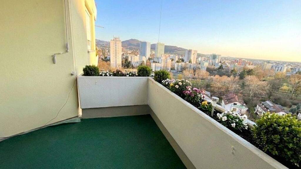 Zum Verkauf steht eine große 2 Zimmer Wohnung in der 13. Etage eines Hochhauses aus dem Jahr 1972 in Freiburg im Breisgau.