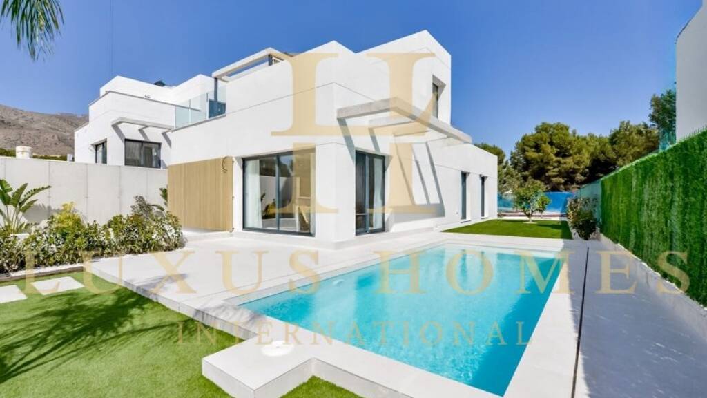 Luxuriöse Villa mit großem Garten, Pool, Meerblick und Garage in einer Premium-Gegend in der Nähe von Benidorm
