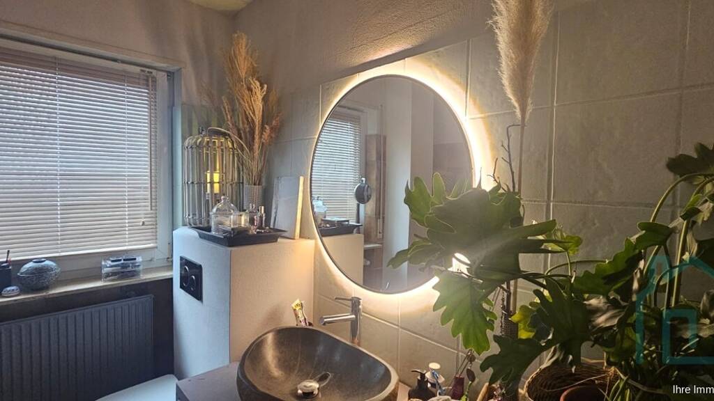 Das Bad mit Fenster sorgt für angenehme Belüftung und Helligkeit. Der vorhandene Waschmaschinenanschluss erhöht den Alltagskomfort zusätzlich.
