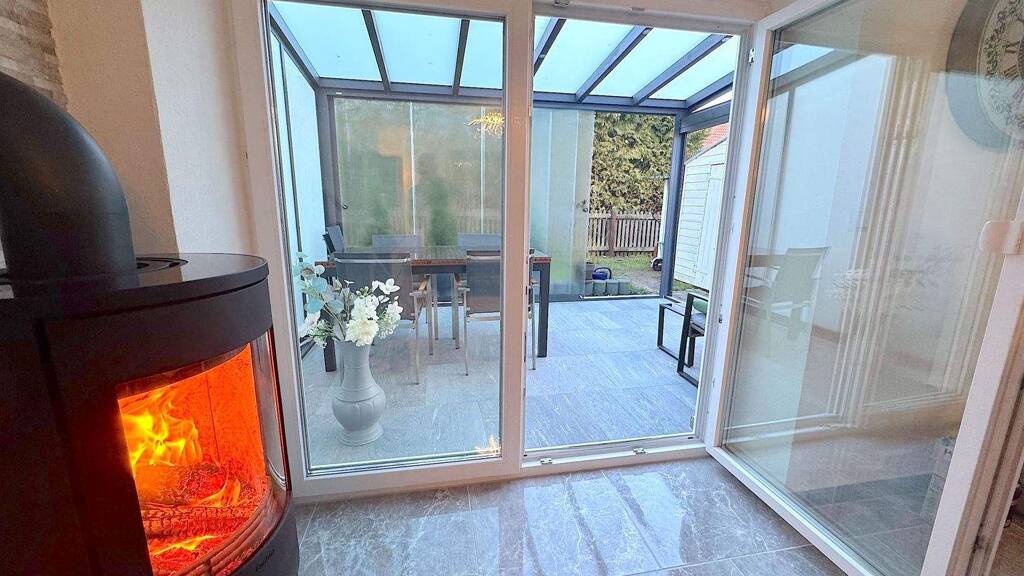 Im Erdgeschoss befindet sich der Flur, die Küche inklusive neuwertiger Einbauküche mit Marken-Elektrogeräten und Wasserenthärtungsanlage für Trinkwasser, sowie das Wohnzimmer mit gemütlichem Schwedenofen und Zugang zum Wintergarten.