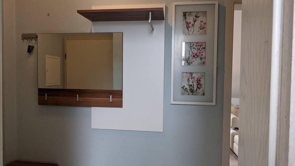 Das Bad ist mit einer neuen Dusche sowie Waschbecken mit neuem Spiegelschrank ausgestattet. Im Flur gibt es eine Garderobe und einen Schuhschrank. Es wird ein Breitbandanschluss zur kostenfreien Mitbenutzung zu Verfügung gestellt.
