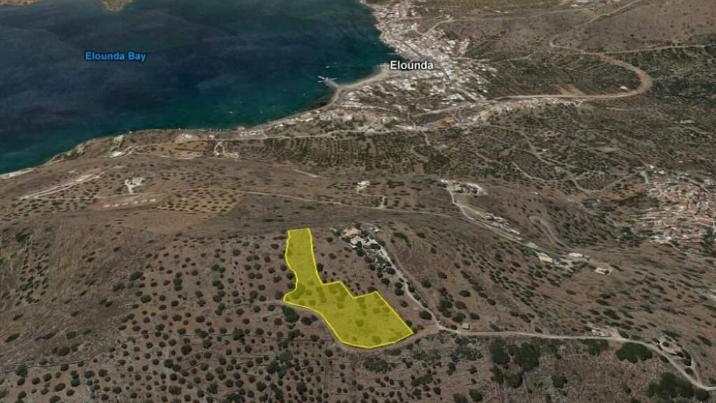 Ein Baugrundstück mit Blick auf die Bucht von Elounda, einschließlich der berühmten Insel Spinalonga, in der Nähe des Dorfes Pano Pines und nur eine kurze Fahrt vom Elite-Touristenort Elounda entfernt.