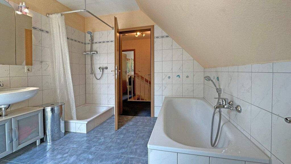 Die Wohnfläche von ca. 112 m² verteilt sich familiengerecht über zwei Etagen auf insgesamt vier Zimmer, zwei Flure, das Vollbad mit Tageslicht, das Gäste-WC, die Küche sowie auf den Hauswirtschaftsraum.
