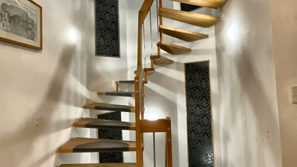 Über den Hauseingang gelangen Sie zunächst in den Windfang, von dem aus sich ein erstes Badezimmer erschließt. Durch eine Glastür betreten Sie den zentralen Flur mit offener Holztreppe, welche alle Etagen des Hauses miteinander verbindet. Das Erdgeschoss bildet den Lebensmittelpunkt des Hauses: Hier befindet sich ein großzügiges Wohn- und Esszimmer mit Zugang zum ca. 10 m² großen Balkon sowie zu einer der beiden Terrassen. Die Küche ist sowohl vom Wohnbereich als auch vom Flur erreichbar und verfügt über einen praktischen angrenzenden Speiseraum. Ergänzt wird das Raumangebot im Erdgeschoss durch ein weiteres Zimmer, das zuletzt als Arbeitszimmer genutzt wurde.