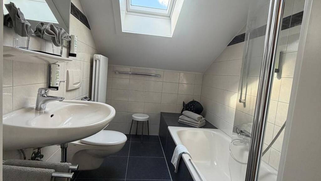 Die Ausstattung entspricht einem gepflegten und modernen Standard, wobei gleichzeitig der historische Charakter des Gebäudes erhalten geblieben ist. Große Fensterflächen, angenehme Raumhöhen und die solide Bauweise sorgen für ein besonderes Wohn- und Aufenthaltsgefühl, das von Gästen sehr geschätzt wird.