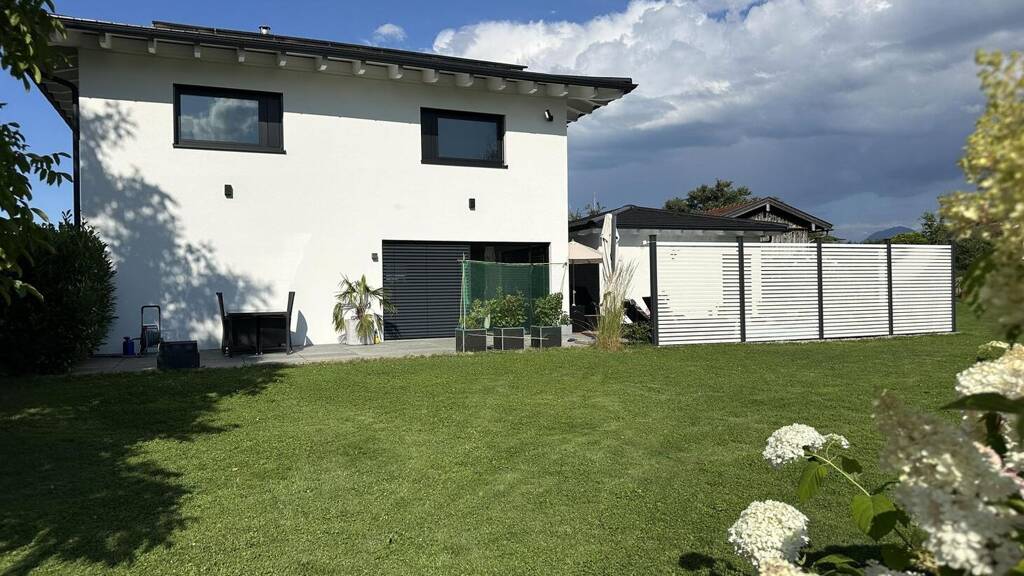 Das hochwertige Einfamilienhaus befindet sich in Bernau am Chiemsee, eine Gemeinde im oberbayerischen Landkreis Rosenheim. Das Objekt liegt nahe dem Bahnhof von Bernau. Etwas Bahngeräusch im Außenbereich muss man zeitweise akzeptieren.