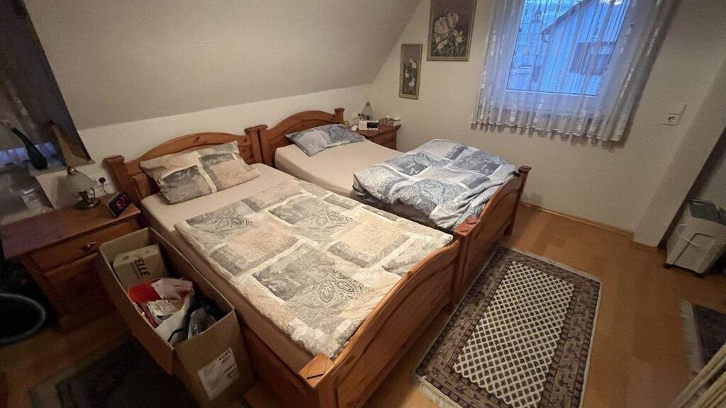 Auf Wunsch kann die Wohnung komplett möbliert angemietet werden. Die Wohnung befindet sich im Dachgeschoss eines Zwei-Familien-Hauses mit einer halben Doppelgarage und zusätzlichem Parkplatz vor der Garage. Zusätzlich zum Balkon im OG verfügt die Wohnung über eine geräumige Terrasse, romantisch gelegen neben einem kleinen Bachlauf.