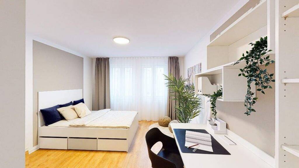 Die Mikro-Apartments im "STUDIO 53" sind modern und vollständig eingerichtet. Ideal für Studierende und Young Professionals sowie Pendler. Der Wohn- und Schlafbereich hat einen Vinyl-Designbodenbelag. Die Pantry ist in den Wohn- und Schlafbereich integriert. Das Bad hat eine ebenerdige Dusche und einen Handtuchheizkörper. Im Keller befinden sich Waschmaschinen und ein Trockner über einen Drittanbieter. Der begrünte Außenbereich lädt zum Verweilen und Treffen mit Nachbarn ein. Ebenfalls im Hofbereich befindet sich ein Fahrradhaus und ein weiterer Fahrrad-Abstellraum ist im Keller.