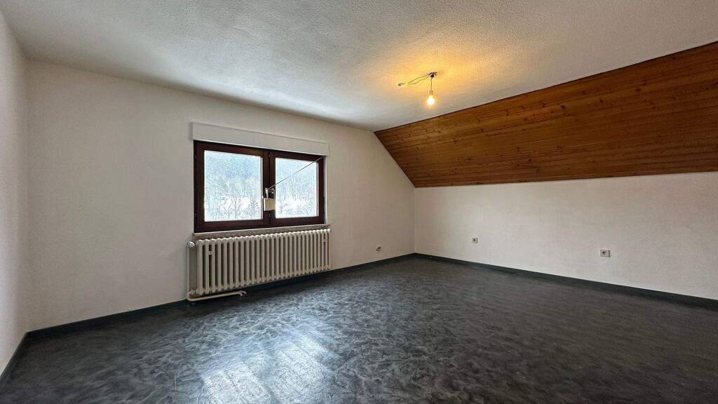 Der durchdachte Grundriss des Einfamilienhauses bieten viel Platz für Ihr individuelles Traumhaus. Im Erdgeschoss befinden sich die Küche, das Wohnzimmer mit Holz-Kaminofen, das Badezimmer und ein Schlafzimmer. Im Obergeschoss sind vier weitere Zimmer mit einer separaten Toilette.