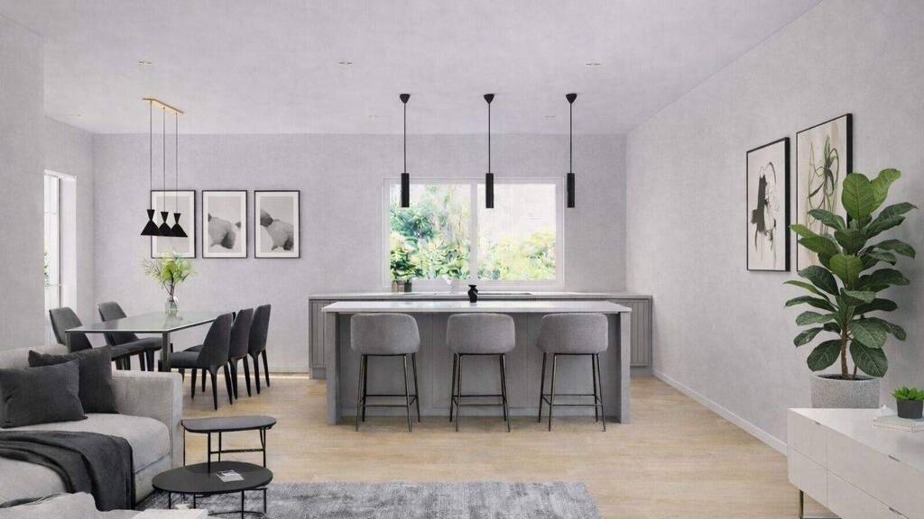 Der offene Küchen- und Essbereich bietet viel Raum für kreative Einrichtungsideen - ganz nach Ihrem persönlichen Stil. Das freundliche Schlafzimmer besticht durch seine ruhige Lage und schafft einen harmonischen Rückzugsort für erholsame Nächte.