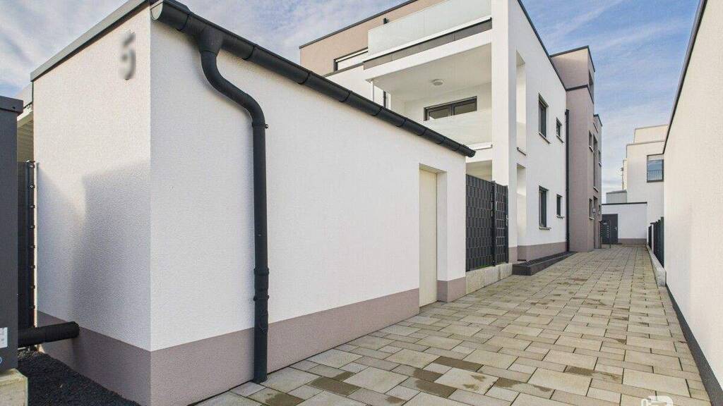 Diese neuwertige Eigentumswohnung befindet sich in einem im Jahr 2024 errichteten Mehrfamilienhaus in solider Massivbauweise mit insgesamt sechs Wohneinheiten und liegt im Erdgeschoss des Objekts. Die Wohnung selbst wurde kürzlich fertiggestellt und präsentiert sich in einem erstklassigen, bezugsfertigen Zustand.