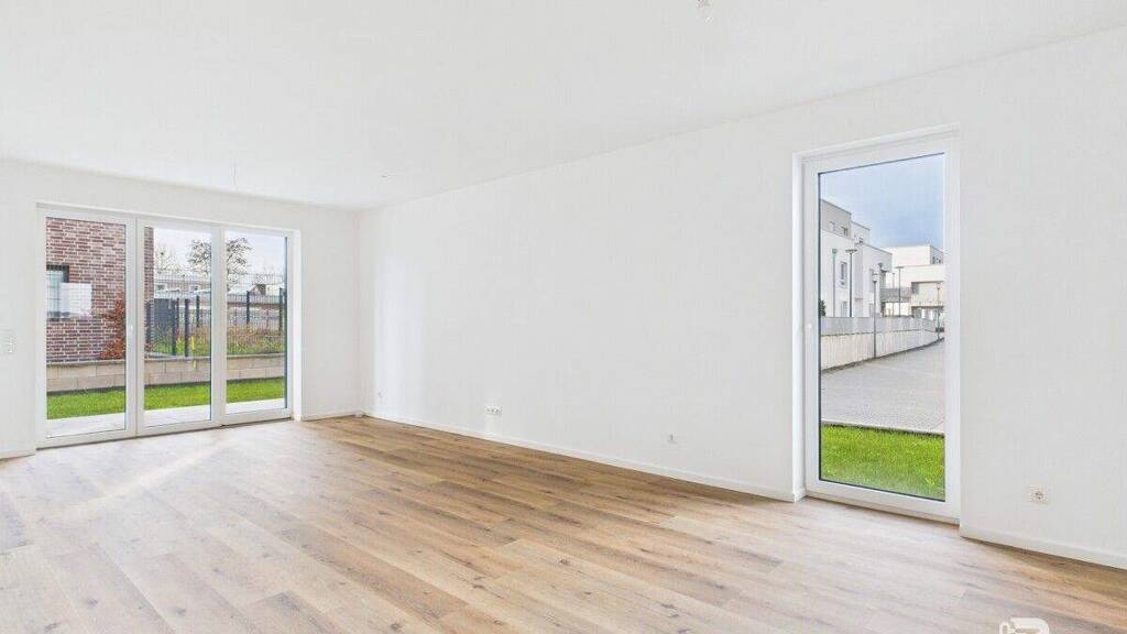 Die Wohnung verfügt über insgesamt drei Zimmer, darunter zwei gut geschnittene Schlafzimmer. Der großzügige, offen gestaltete Wohn-/Ess-/Küchenbereich bildet das Herzstück der Wohnung und bietet einen direkten Zugang zur Terrasse und in den privaten Gartenbereich, wodurch ein angenehmer Übergang zwischen Innen- und Außenbereich entsteht.