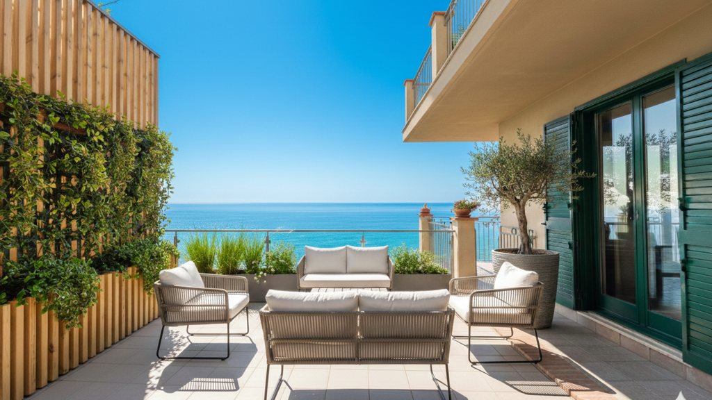 In der renommierten Wohnanlage Saracen in Gliaca di Piraino bieten wir eine elegante Wohnung mit Panoramablick auf zwei Ebenen an, die sowohl intern durch eine elegante Wendeltreppe als auch extern durch eine bequeme separate Treppe miteinander verbunden sind.