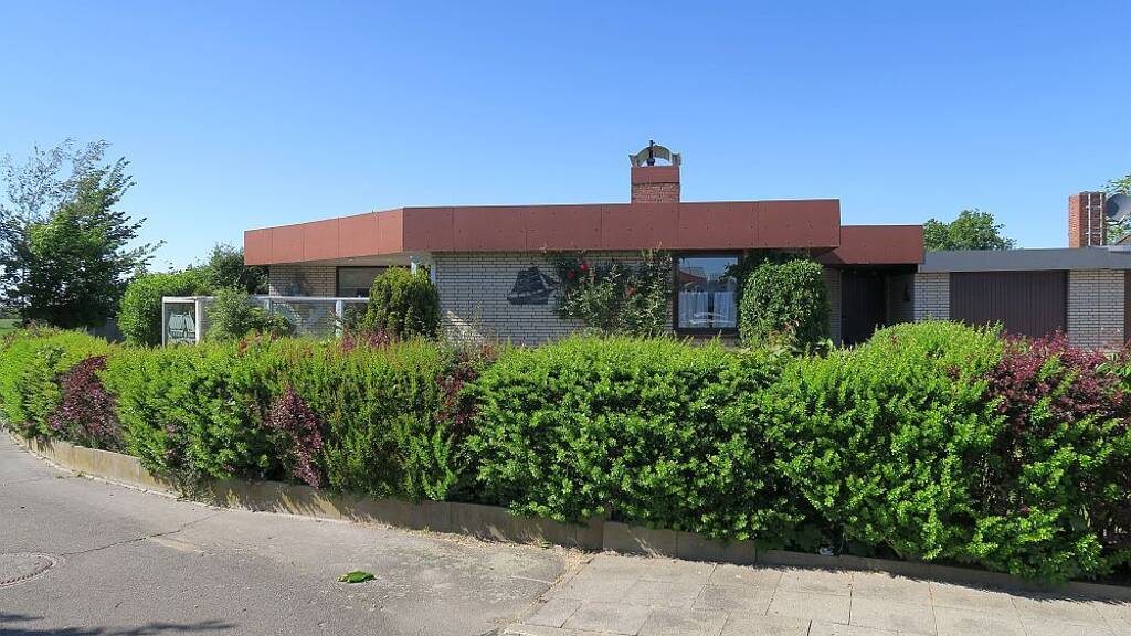 Dieser, in einer Sackgasse gelegene Flachdach-Bungalow mit 6 Zimmern auf einen 826m² großen Grundstück und einer Wohn- und Nutzfläche von insgesamt 218 m², bietet auch einer größeren Familie ausreichend Platz.