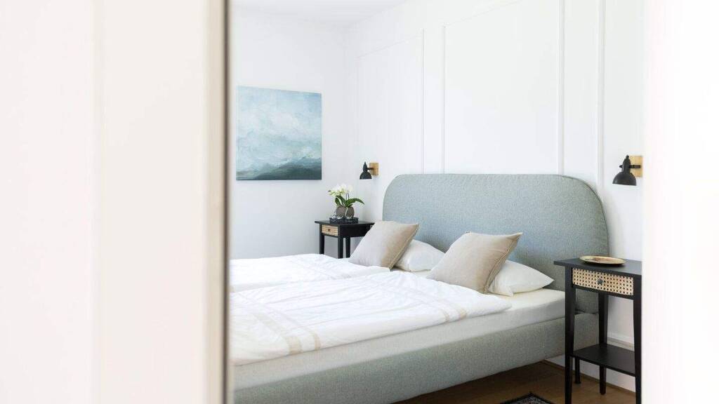 Im Innenbereich sorgen edle Echtholzböden in Wohn- und Schlafräumen sowie hochwertige Natursteinfliesen in Bad und separatem Gäste-WC für stilvolle Eleganz. Die Architektur stammt vom renommierten Büro Baumschlager Hutter Partners, das für klare Linien, moderne Ästhetik und außergewöhnliche Wohnqualität bekannt ist.