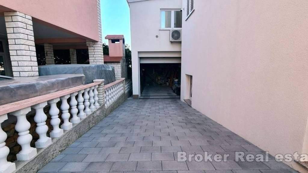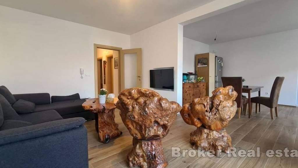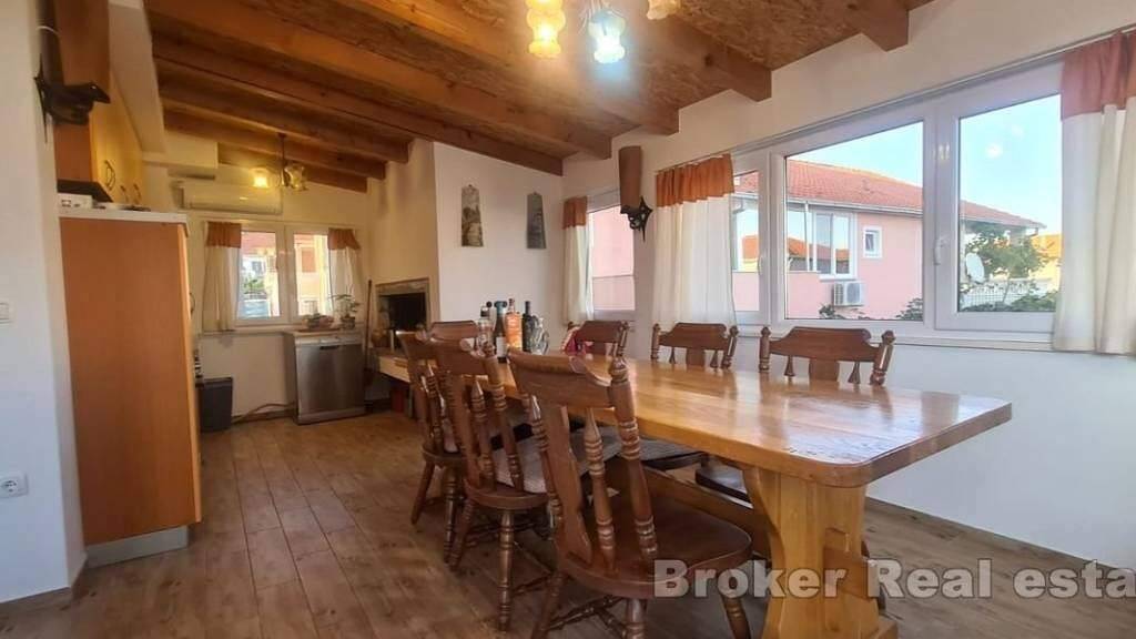 Eine geräumige Drei-Zimmer-Wohnung mit teilweisem Meerblick in Okrug Gornji, auf der Südseite der Insel Ciovo, steht zum Verkauf. Sie befindet sich im ersten Stock eines Gebäudes, das von ähnlichen Einrichtungen umgeben ist.
