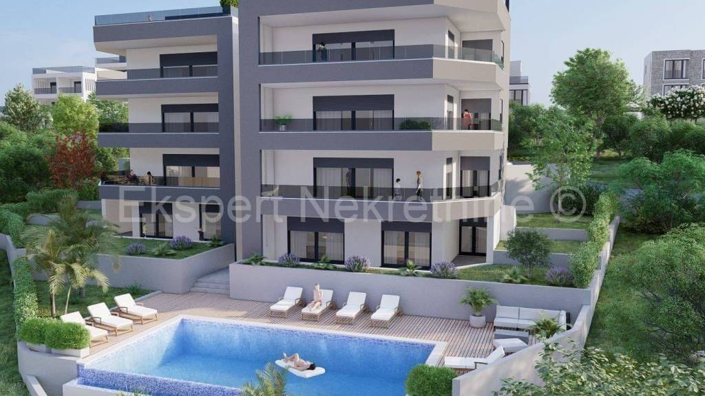 Split, Ciovo, Slatine, in Strandnähe, komfortable Zwei-Zimmer-Wohnung 113 m2 (82 m2 Wohnung plus 32 m2 Terrasse) in einem neuen Gebäude mit gemeinsamem Pool. Die Wohnung befindet sich im hohen Erdgeschoss, ist nach Nordosten und Süden ausgerichtet und besteht aus zwei großen Schlafzimmern, zwei Bädern, Flur, Küche mit Esszimmer und großem Wohnzimmer sowie einer großen Terrasse (32 m2) mit Meerblick. Die Wohnung ist nur 220 m vom Meer und Strand entfernt. Zur Wohnung gehören außerdem zwei Außenparkplätze. Der Bau hat begonnen und die Fertigstellung ist für Sommer 2026 geplant. Hochwertige Bauweise (Fußbodenheizung in der gesamten Wohnung, Klimaanlage in jedem Zimmer, hochwertige Keramik und Sanitärkeramik usw.). Möglichkeit, die Ausstattung nach eigener Wahl auszuwählen. Ruhige Lage in der Nähe des schönen Strandes und des Stadtzentrums. Zahlung nach Bauabschnitten. Für weitere Informationen wenden Sie sich bitte an die Agentur.