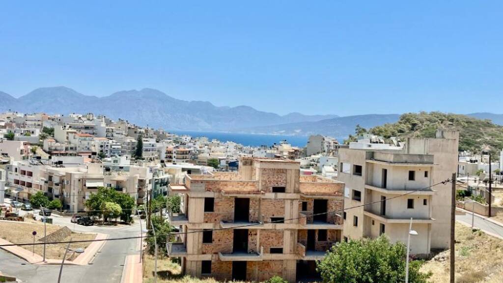 MIT VIDEO! Kreta, Agios Nikolaos: Geräumige Wohnung im 2. Stock mit Panoramablick auf das Meer zu verkaufen