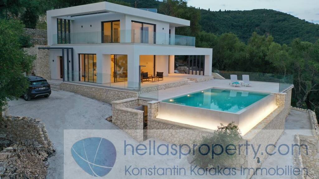 Neuerbaute moderne Villa mit Pool in der begehrten Gegend in Hanglage von Nissaki / N.O. Korfu.