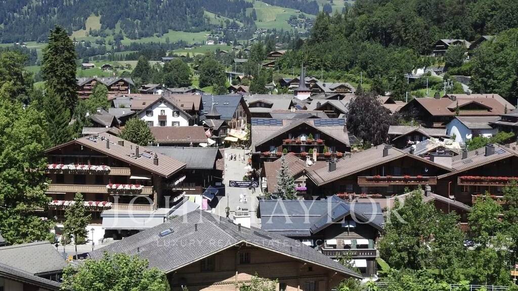Great central location with a beautiful view on The Palace Hotel, The Alpina Hotel, The Grand Park Hotel and over the Promenade of Gstaad.