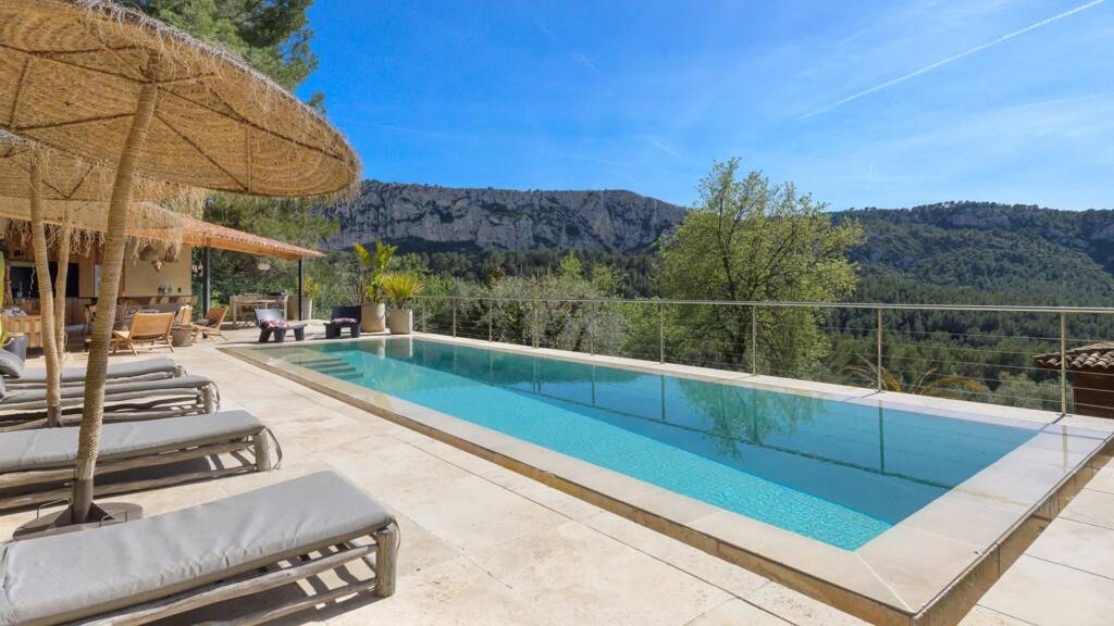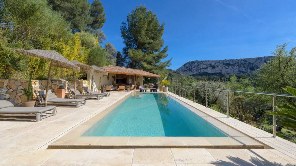 In a country environment, this magnificent 240 m2 contemporary property is built on a 5000 m2 landscaped plot including a 12 x 3 m swimming pool and a pool house with an equipped kitchen.