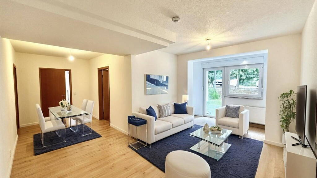 Das Herzstück der Wohnung ist der helle Wohn- und Essbereich mit direktem Zugang zur Terrasse und dem eigenen Garten - ideal für entspannte Stunden im Freien, Grillabende oder einfach zum Abschalten nach einem langen Tag.
