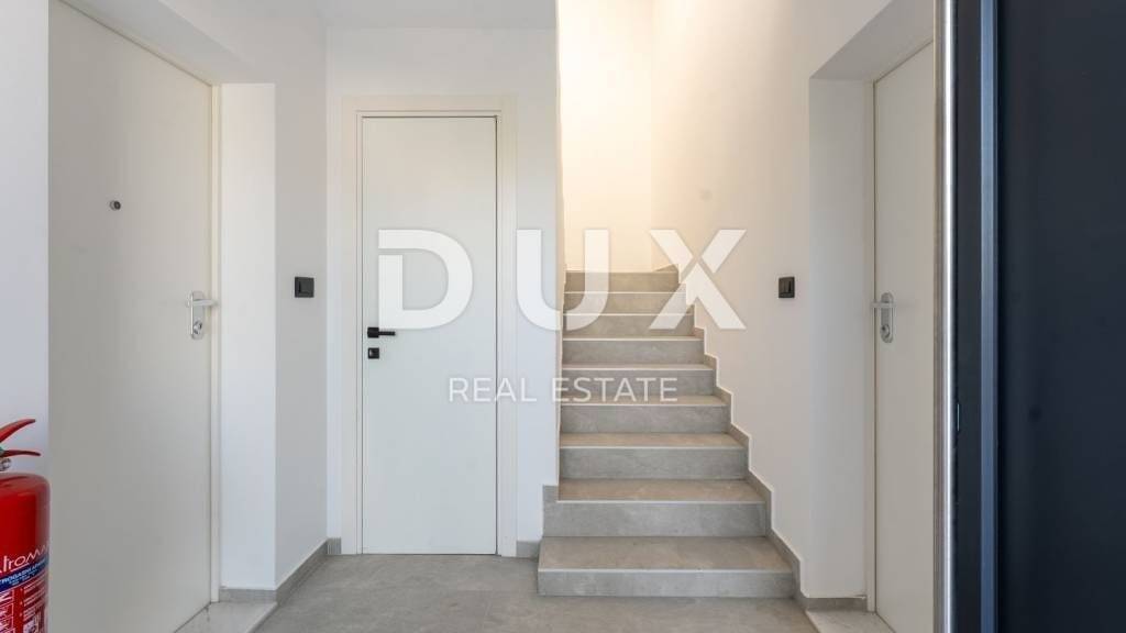 In der Nähe von Baska, 4 km vom Meer entfernt, steht eine Wohnung in einem neuen Gebäude zum Verkauf, modern gestaltet und gebaut auf hohem Niveau. Der Neubau besteht aus vier Wohneinheiten und liegt am Rande der Grünzone, umgeben von Olivenhainen. Die Wohnung befindet sich im 1. Stock des Gebäudes, hat eine Wohnfläche von 61,99 m2 und besteht aus einer Open-Space-Küche mit Esszimmer und Wohnzimmer, zwei Schlafzimmern und einem Badezimmer. Vom Wohnzimmer aus gibt es eine überdachte Terrasse von 10,33 m2. Die Wohnung ist nach Süden ausgerichtet und verfügt über zwei Parkplätze im Gemeinschaftsgarten. Die Zimmerei ist aus Aluminium, mit elektrischen Jalousienhebern, die Eingangstür ist einbruchhemmend. Die Klimaanlagen werden von Daikin sein und die Außengeräte werden versteckt sein. Beim Bau wurden äußerst hochwertige Materialien, moderne Sanitäranlagen, Keramik und andere Beläge verwendet. Der Käufer ist von der Zahlung der Immobilienumsatzsteuer befreit.