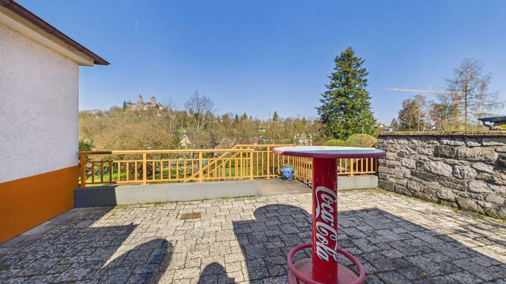 Dieses charmante Zweifamilienhaus vereint modernen Wohnkomfort mit vielseitigen Nutzungsmöglichkeiten und einem ganz besonderen Highlight: einem beeindruckenden Schlossblick.