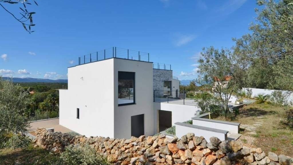 Zum Verkauf steht eine luxuriöse neue Villa auf der Insel Krk, im weiteren Bereich der Stadt Krk, die alles bietet, was Sie sich für ein entspanntes und elegantes Leben wünschen können. Die Villa erstreckt sich über 199,70 m2 und befindet sich auf einem großzügigen Grundstück von 1150 m2. Der gepflegte Außenbereich mit Pool, Terrasse und atemberaubendem Meerblick macht diese Immobilie ideal für einen Rückzugsort vom Alltag. Die Villa besteht aus einem Erdgeschoss mit drei komfortablen Schlafzimmern, zwei modernen Badezimmern, einem Heizungsraum und einem großzügigen Wohnzimmer mit einer Fläche von 37 m2, perfekt für Familienabende. Im Zwischengeschoss befindet sich eine Sauna und ein zusätzliches Badezimmer, während im ersten Stock ein elegantes Wohnzimmer, eine Küche mit Essbereich, ein Gäste-WC und eine großzügige Terrasse angeboten werden. Die Immobilie wurde nach höchsten Standards gebaut, mit hochwertigen Bodenbelägen, moderner ALU- und PVC-Fenster- und Türverkleidung, Klimaanlage und Fußbodenheizung. Mit der Vorbereitung für eine Ladestation für Elektroautos und drei Parkplätzen wurde die Villa mit dem Ziel von Komfort und Luxus entworfen. Die Villa befindet sich an einer ruhigen Lage, nur 3000 m vom Meer entfernt, und bietet sowohl Privatsphäre als auch die Nähe zu allen Annehmlichkeiten, die die Stadt Krk zu bieten hat.