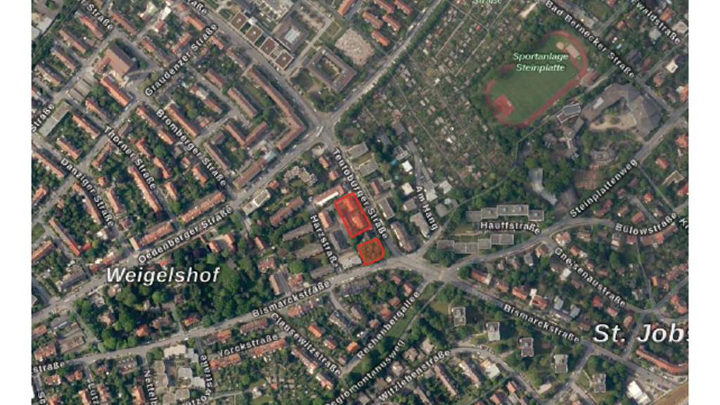 Bei den angebotenen Grundstücken handelt es sich um zwei zusammenhängende bebaute Grundstücke, Teutoburger Straße 7 u. 9 und ein solitäres unbebautes Eckgrundstück, Teutoburger Straße 1, in Nürnberg. Die Grundstücke Teutoburger Str. 7 u. 9 bilden für das nachfolgend vorgeschlagene Bebauungskonzept eine Einheit. Der Erwerb der Grundstücke kann auch getrennt von der Teutoburger Str. 1 (unbebautes Eckgrundstück) erfolgen.