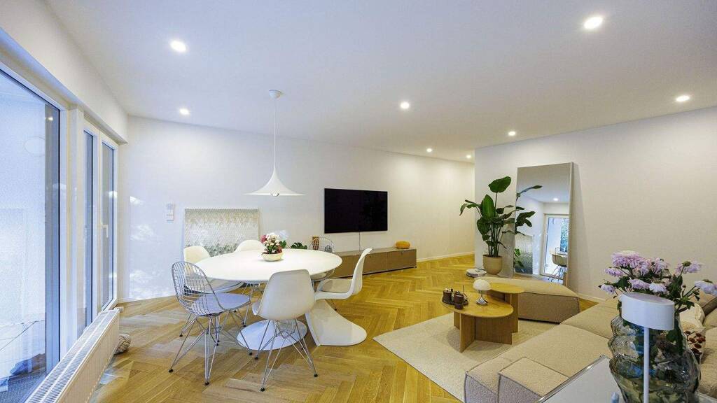 Die Wohnung wurde im Jahr 2023 umfassend saniert und besticht durch hochwertige Materialien und durchdachte Details: Neues Badezimmer, neues WC, neue Elektrik, neue Fenster, neue Türen, Eiche-Fischgratparkett, elektrische Rollläden im Wohnzimmer und dimmbare Deckenspots schaffen ein helles, freundliches Ambiente. Zuletzt wurden die Mülleinhausung und die Einfahrt erneuert, sodass die Fahrzeuge bequem direkt vor den Garagen parken können. Die Zentralheizung wurde generalüberholt, sämtliche Teile erneuert und ausgetauscht.