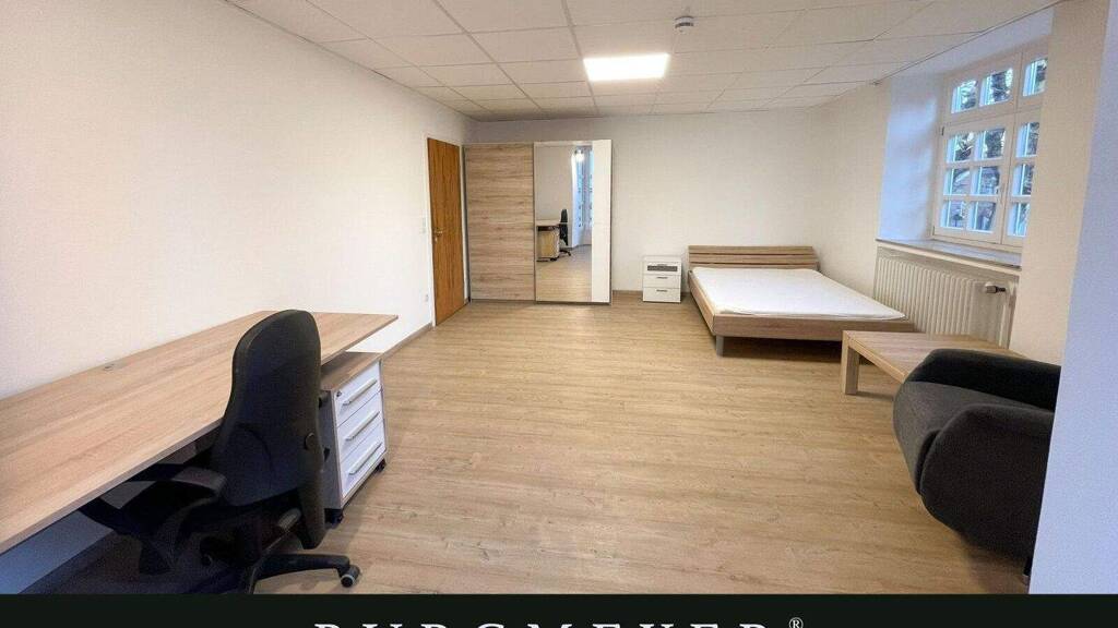 Das Zimmer befindet sich im 1. Obergeschoss eines Wohn- und Geschäftshauses und bietet mit einer Fläche von ca. 24 m² ein angenehmes Zuhause für Studierende, Auszubildende, Berufseinsteiger oder Berufspendler. Es ist teilmöbliert und verfügt bereits über ein Bett, einen Kleiderschrank, einen Schreibtisch mit Schreibtischstuhl sowie einen Relaxsessel und einen kleinen Couchtisch - ideal zum Lernen oder Entspannen in ruhiger Atmosphäre.