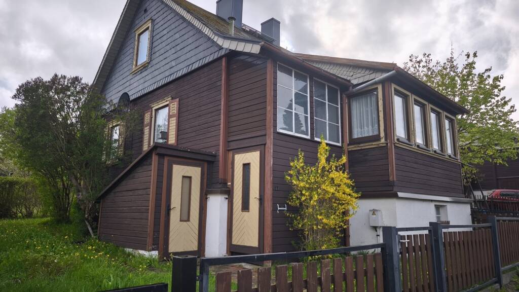 Das im Jahre 1950 in Leichtbauweise errichtete Objekt wurde über viele Jahre fortlaufend gepflegt und teilweise modernisiert. So wurde nachträglich eine Vollunterkellerung und so z. B. eine Garage mit Verbindung zum Haus geschaffen. Das Gebäude verfügt auf 2 Wohnetagen über 5 Zimmer, Küche, 1 Badezimmer mit Wanne, eine Veranda und Abstellräume. Großzügige Räume und angenehme Deckenhöhen bieten viel Potential für ein ganz besonderes Wohnkonzept. Durch die Verbindung von Zimmern im Erdgeschoss ließe sich auch ein moderner, offener Wohnbereich gestalten. Das Dachgeschoss bietet 2 gemütliche Kinderzimmer und Abstellräume. Im Keller befindet sich ein Waschraum mit Dusche, Werkstatt, Lager, Heizung und die Garage. Der Garten ist pflegeleicht gehalten und ohne extremes Gefälle, hier können Sie ihren Ideen freien Raum lassen!