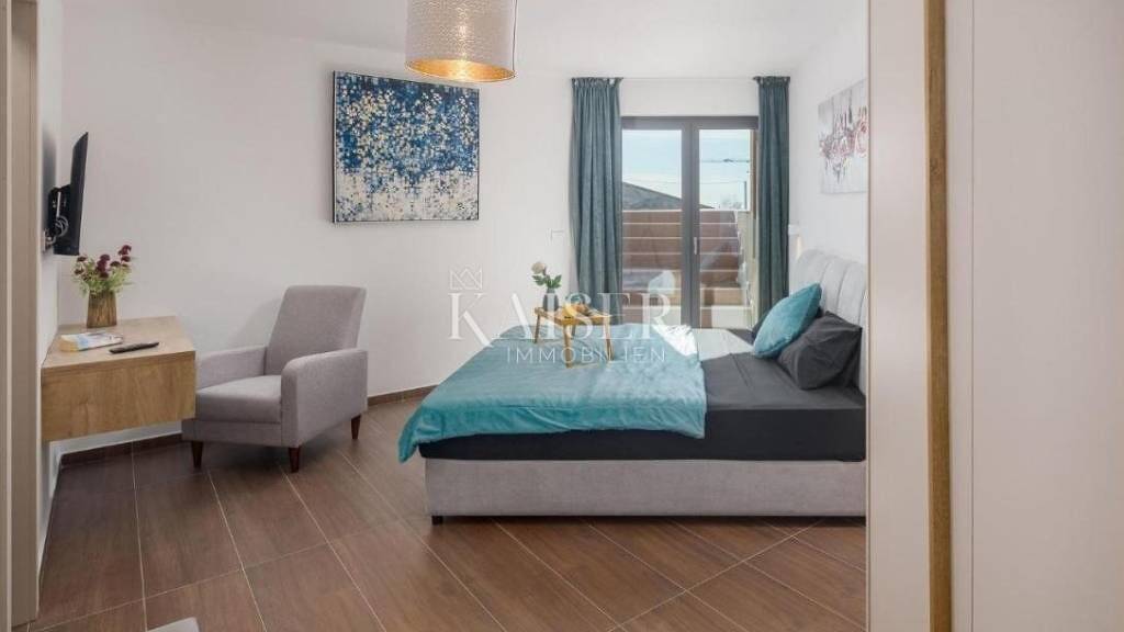 Kaiser Immobilien präsentiert eine wunderschöne, moderne Villa mit Pool und großem Garten zur Langzeitmiete in der Nähe von Novigrad. Die Villa erstreckt sich über drei Etagen mit einer Gesamtfläche von 155 m² und verfügt zusätzlich über einen 30 m³ großen Pool, einen Parkplatz und einen Garten mit Olivenbäumen, der ein mediterranes Flair verströmt. Im Erdgeschoss befinden sich Küche, Esszimmer und ein großes Wohnzimmer mit Zugang zu einer überdachten Terrasse, Sonnenterrasse und Pool. Eine Treppe führt ins Untergeschoss mit Technikraum (Waschküche/Heizraum) und einem Schlafzimmer mit Bad, das über eine Treppe mit der Terrasse mit Pool und Sonnenterrasse verbunden ist. Im ersten Obergeschoss befinden sich zwei Schlafzimmer mit Bad und großen, nach Süden ausgerichteten Fenstern, die viel Tageslicht hereinlassen. Alle Schlafzimmer sind mit einem Doppelbett ausgestattet. Die Villa ist modern eingerichtet und komplett mit allen notwendigen Haushaltsgeräten ausgestattet. Für Kühlung sorgt eine Klimaanlage, und eine Fußbodenheizung mit Wärmepumpe ist vorhanden. Der großzügige Parkplatz bietet Platz für vier Fahrzeuge. Dieses wunderschöne Haus liegt in einem ruhigen Dorf, nur 2,5 km vom Meer und dem Stadtzentrum entfernt. Die Villa mit ihrem großzügigen 710 m² großen Garten ist ideal für Familien mit Kindern - sowohl für den Alltag als auch für den Urlaub. Haustiere sind willkommen. Die Mindestmietdauer beträgt ein Jahr. Eine Langzeitmiete ist ab Oktober 2026 möglich. Nebenkosten sind nicht im Mietpreis enthalten. In der Nähe: Fahrradverleih: 2500 m; Markierter Wanderweg (0-5 km): 500 m; Mountainbike-Strecke (0-5 km): 500 m; Radweg (0-5 km): 500 m; Laufstrecke/Trimm-dich-Pfad: 2000 m; Fitnesscenter: 2000 m; Tierfuttergeschäft: 2000 m; Strand, an dem Haustiere willkommen sind: 2000 m; Tierarzt: 12000 m; Entfernung zum Flughafen PUY: 7000 m; Entfernung zum Nachbarn: 100 m; Entfernung zum Geschäft: 2000 m; Entfernung zum Restaurant: 500 m; Entfernung zur Stadt: 2000 m (Novigrad); Entfernung zur Küste/zum Strand: 2500 m (Kieselstrand). Die Maklerprovision für den Käufer entspricht einer Monatsmiete zuzüglich Mehrwertsteuer. Die Provision deckt alle mit dem Mietvertrag verbundenen Leistungen ab und wird nur bei Immobilienmietverträgen mit Abschluss des ersten Rechtsakts fällig. Wenn Sie diese moderne Villa mit Pool und schönem Garten zu Ihrem neuen Zuhause machen möchten, kontaktieren Sie uns. Damir Mlacovic, E-Mail: damir@kaiser-immobilien.hr, Telefon: +385-98-339-933
