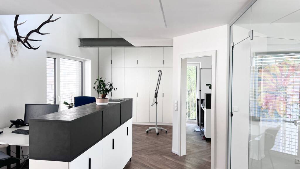 Dieses exklusive Büro besticht durch seine zentrale Lage und hochwertige Sanierung. Mit einer großzügigen Gesamtnutzfläche von ca. 109,47 m² verteilt auf zwei Etagen, bietet es ein ideales Umfeld für Unternehmen, die Wert auf Qualität und ein ansprechendes Arbeitsumfeld legen. Ein zusätzlicher Balkon mit einer Fläche von ca. 6,6 m² rundet das Angebot ab und bietet Raum für Pausen im Freien.