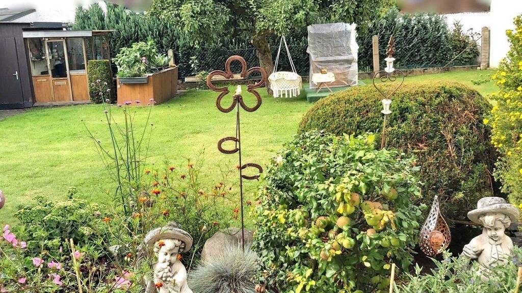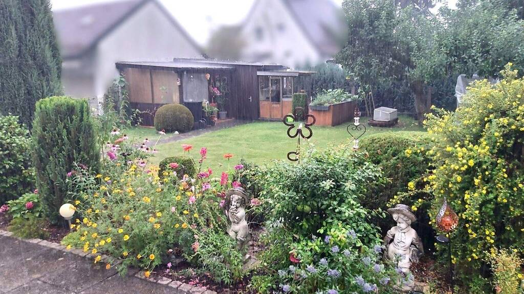 Der liebevoll angelegte Garten bietet schattige Rückzugsorte und große Grünflächen - er ist eine grüne Oase. Auch für die Anlage eines Nutzgartens steht viel Platz zur Verfügung. Ein großes Gartenhaus bietet zusätzlichen Stauraum für Gartengeräte sowie Holz für den Kamin. Eine Garage mit elektrischem Sektionaltor bietet Platz für einen PKW. Durch ein weiteres rückwärtiges Schwingtor kann das Fahrzeug auch auf einem Stellplatz hinter der Garage abgestellt werden.