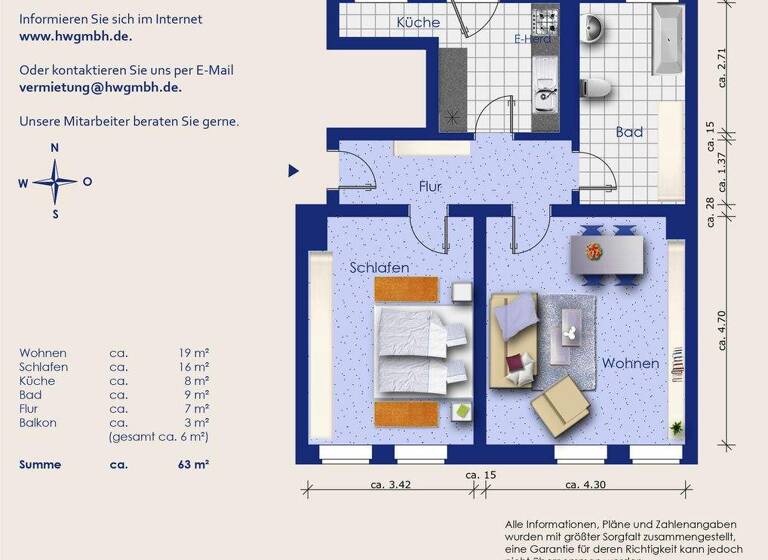 2 Zimmer  â€˘  63,1 m²  â€˘  3. Geschoss  â€˘  frei ab 01.05.2026