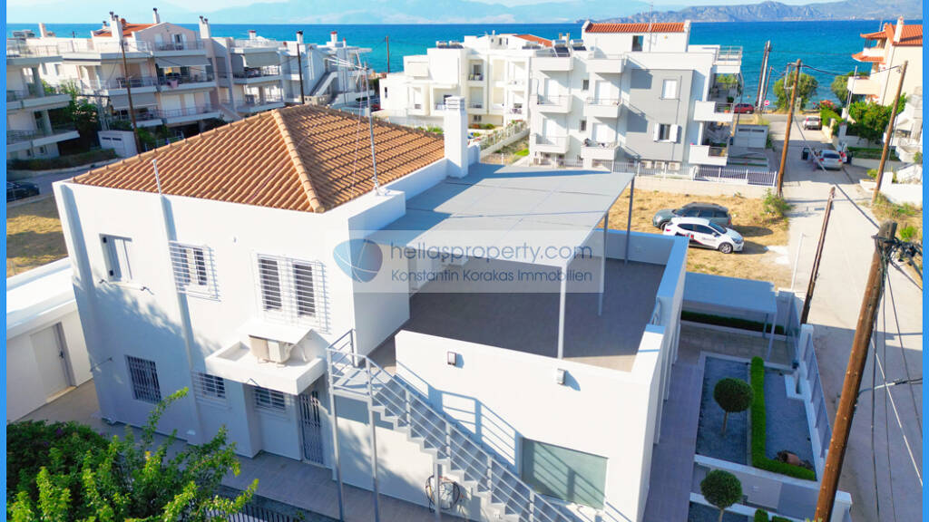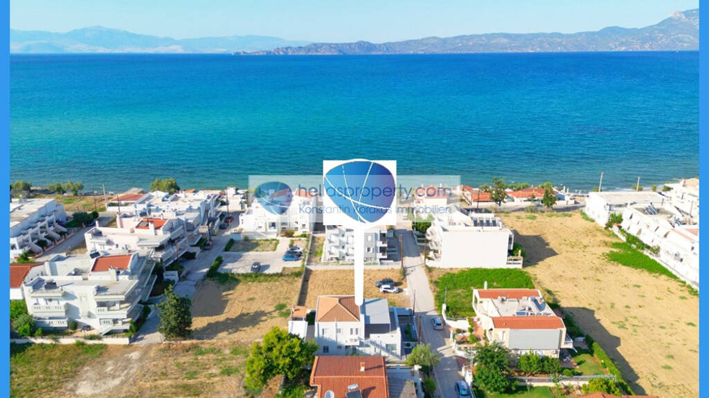 Nur 70 Meter vom Strand entfernt, in einer ruhigen Gegend in Vrachati, steht eine Wohnung im Hochparterre auf einem 400 m² großen Grundstück mit einer Gesamtfläche von 108 m² zur Verfügung (88 m² Haupthaus und 20 m² Nebenräume mit Abstellräumen und WC neben dem Grill).