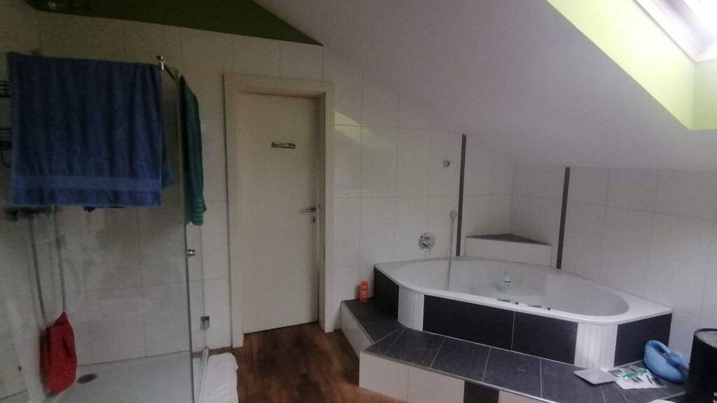 In der darüberliegenden 5 Zimmerwohnung im Obergeschoss stehen eine Wohnküche, Wohnzimmer, 3 Zimmer, Umkleide, Bad und WC bereit. Sie verfügt zudem über einen Schopf und Dachboden.