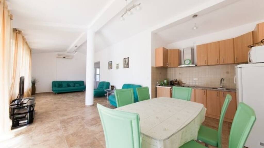 • im ersten Stock gibt es zwei Schlafzimmer, ein Badezimmer, Küche, Garage; • Im zweiten Stock gibt es eine Küche kombiniert mit einem Wohnzimmer, drei Schlafzimmer, ein Badezimmer • Im dritten Stock gibt es eine Küche kombiniert mit einem Wohnzimmer, drei Schlafzimmer, ein Badezimmer • Im vierten Stock gibt es eine Küche kombiniert mit einem großen Flur, ein Schlafzimmer, zwei Badezimmer Das Haus ist komplett eingerichtet. Das Haus ist auch mit einer Klimaanlage ausgestattet. Aus den Fenstern und von der Terrasse hat man einen wunderbaren Blick auf das Meer. Die Stadt Bar ist nur 15 Autominuten entfernt, der Strand 5 Autominuten.