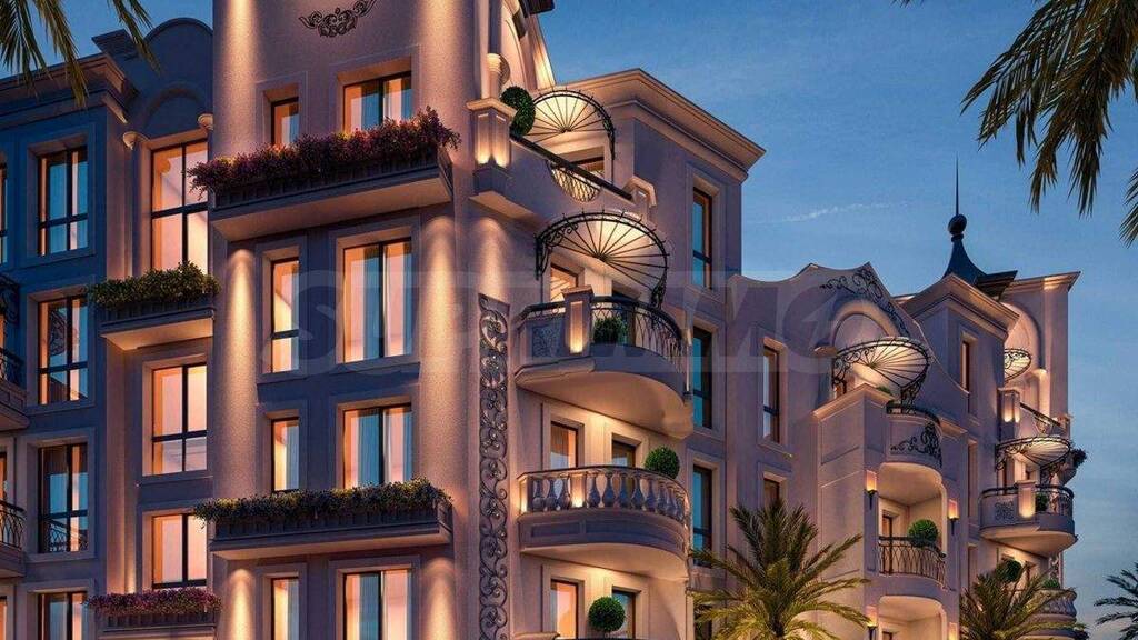 Wir bieten Ihnen eine Einzimmerwohnung in einem neuen, luxuriösen Wohnkomplex zum Kauf an, der aus zwei eleganten Gebäuden besteht und sich 600 Meter vom Strand in Sunny Beach entfernt befindet.